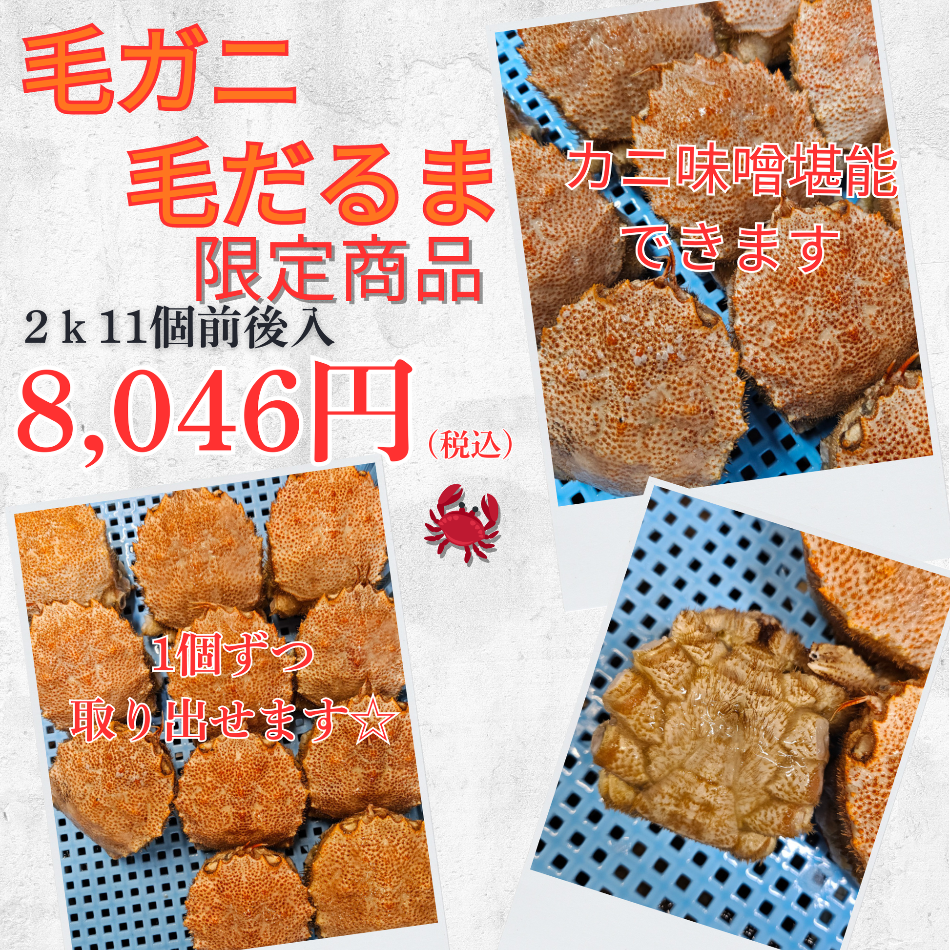 滅多に見れない!?毛ガニの訳アリ品を数量限定で紹介です!